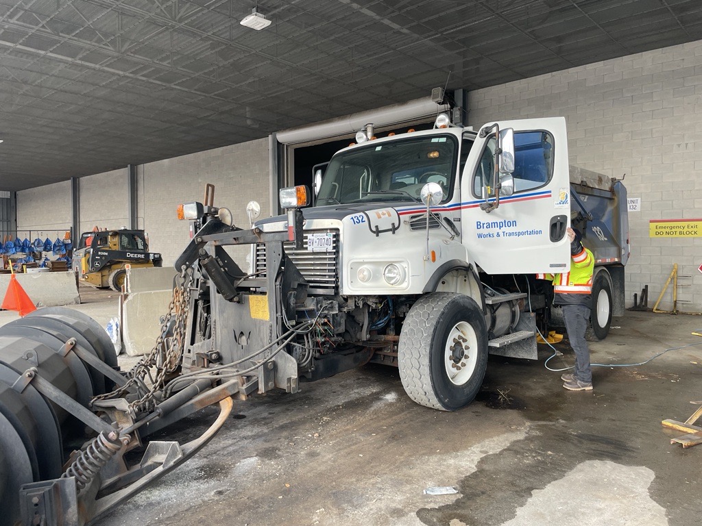A City of Brampton snow plow prepared to clear snow and ice from local roads. Credit: City of Brampton