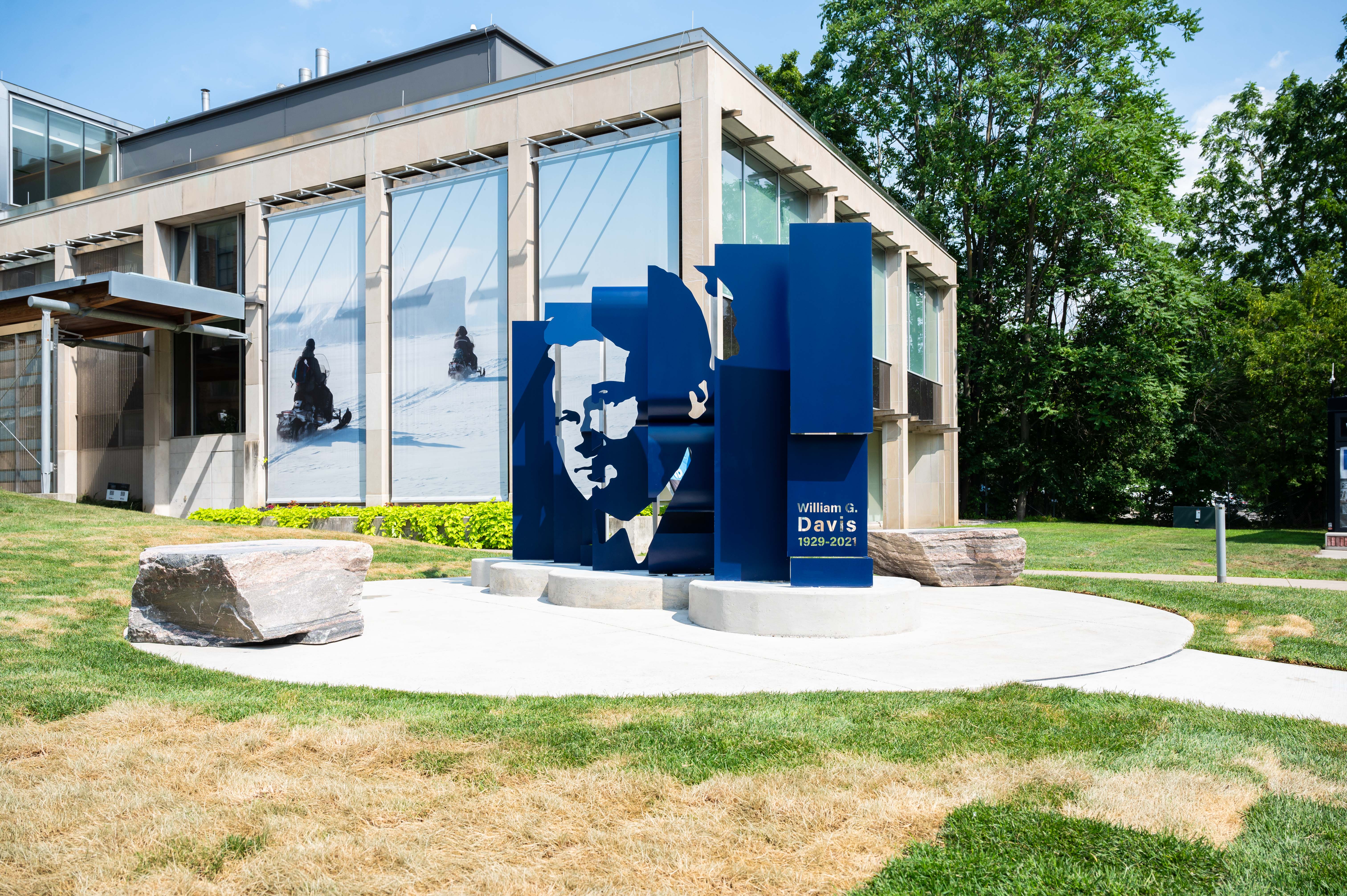 of Connection, is prominently displayed on the grounds of PAMA, adjacent to Brampton City Hall. Designed by artists Xiaojing Yan and Lilly Otasevic, the sculpture uses layered steel panels to dramatically reveal Davis’ likeness and the words “educate” and “inspire” at different angles, a homage to his enduring passion for education and community service.